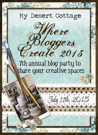 It's time once again for the "Where Bloggers Create" party! This year it will happen on July 11 at the blog My Desert Cottage. This event is a great opportunity to take a peek in the studios, craft rooms, and creative/artistic spaces of other bloggers, as well as showing off your own space. So if you're a blogger, go ahead and take some photos of your creative space, including your favorite organizational ideas and whatever else you want to show off, and join the fun! All of the instructions on how to join are right here. If you're not a blogger but still love all things creative, you can enjoy the party by clicking on each of the blogs participating. Just go to My Desert Cottage on July 11 and take a look around! I'll be there!